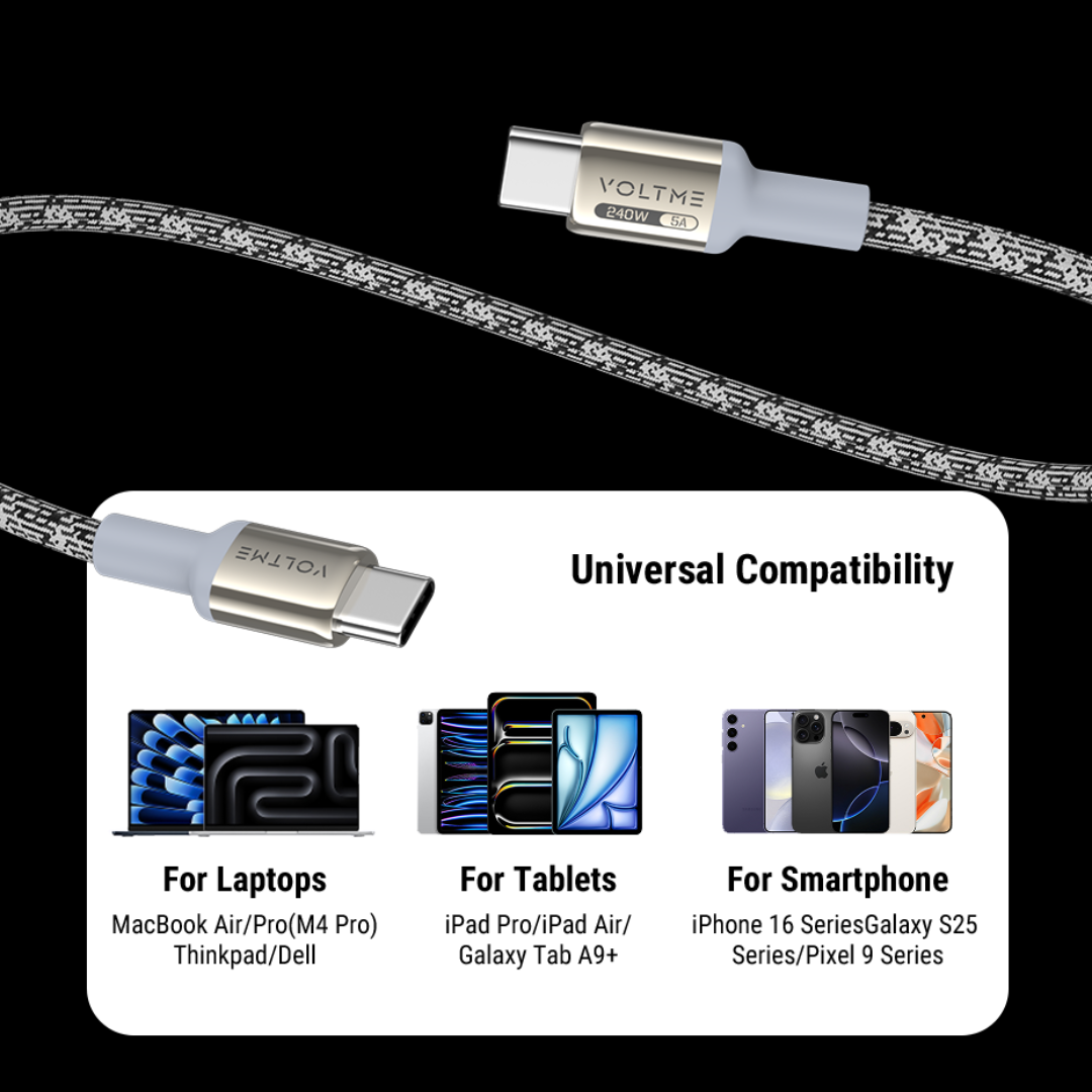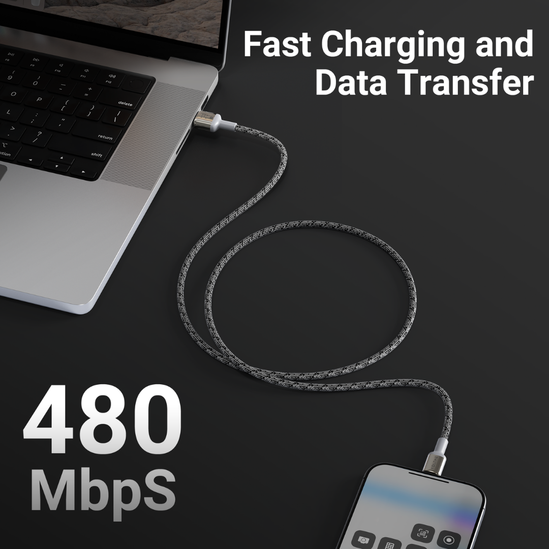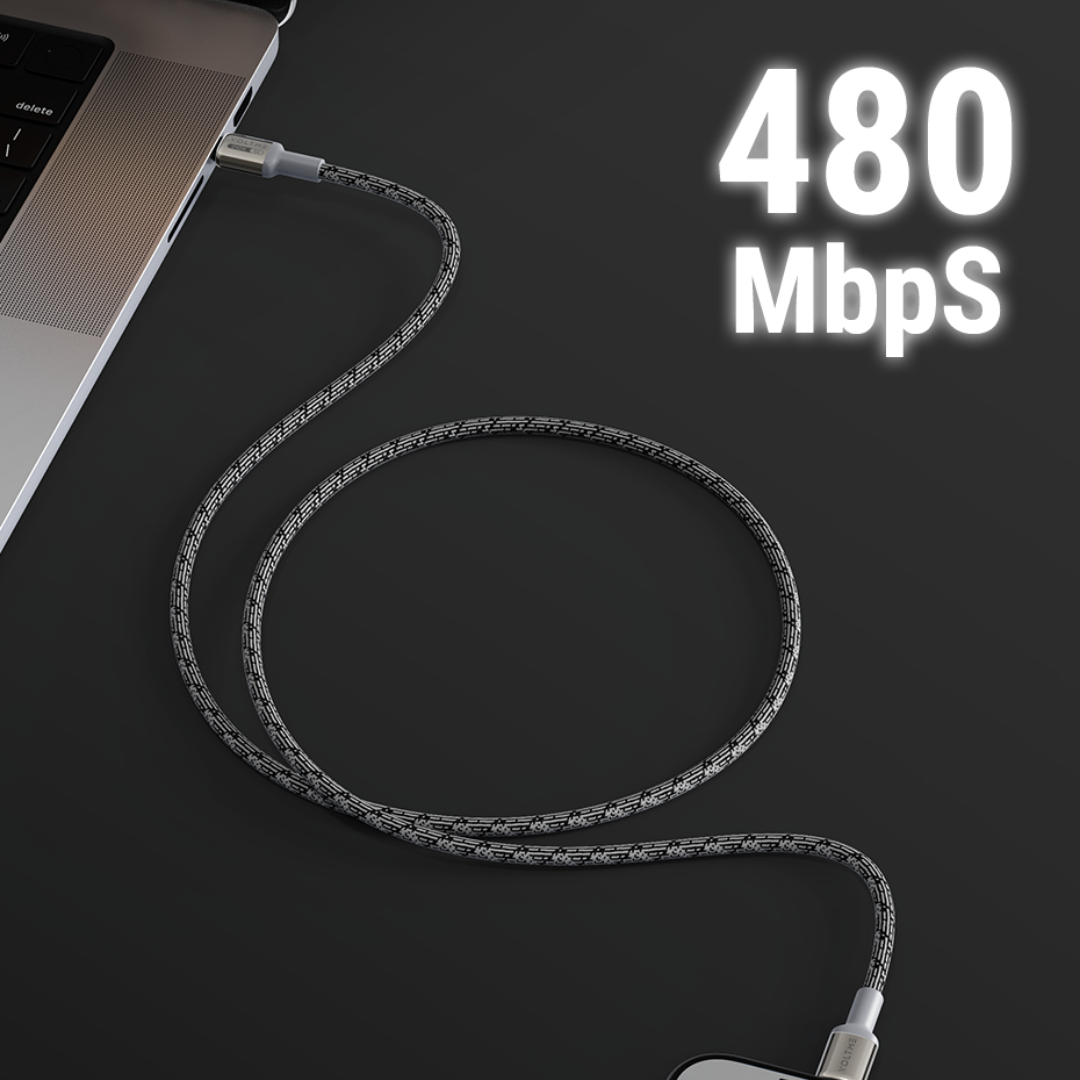 • Colors Available: Grey (C2393) • Braided: Yes • Power Output: Up to 100W (5A, 20V) • Length: 2 meters (6.6 feet) • Data Transfer Speed: 480 Mbps • Warranty: 18 Months
